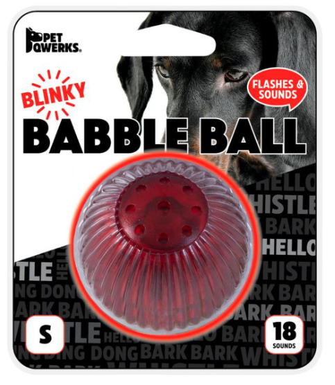 You can show your pup a talkative, good time with the Blinky Babble Ball by Pet Qwerks. This dog toy is an interactive blast that talks when activated. Featuring more than 18 different sounds, your pet will enjoy a unique toy that does more than squeak! Interactive toys are a great way to keep your dog occupied and prevent unwanted behaviors associated with boredom like inappropriate chewing or barking. The Blinky Babble Ball is triggered by touch and turns off automatically when playtime is over.