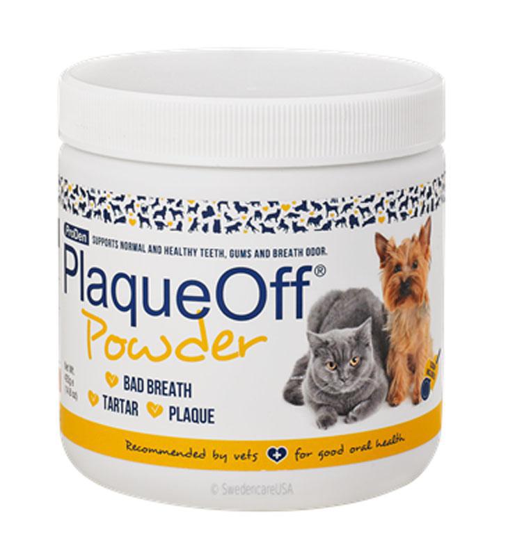 ProDen PlaqueOff® Powder is an all natural food supplement that naturally helps oral health for dogs and cats with a specially selected algae harvested in the North Atlantic from specific areas.