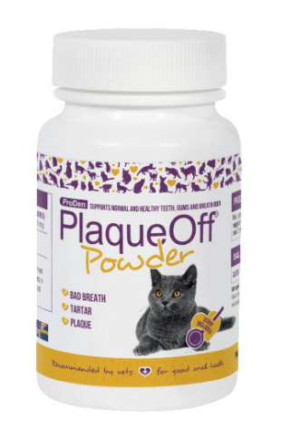 ProDen PlaqueOff® Powder supports normal and healthy teeth, gums and breath odor. Simply add to wet or dry food once a day. The 40 Gram Bottle lasts 6 months to a year for animal under 25 lbs. For Larger animals over 50 pounds average supply is 2 Months.