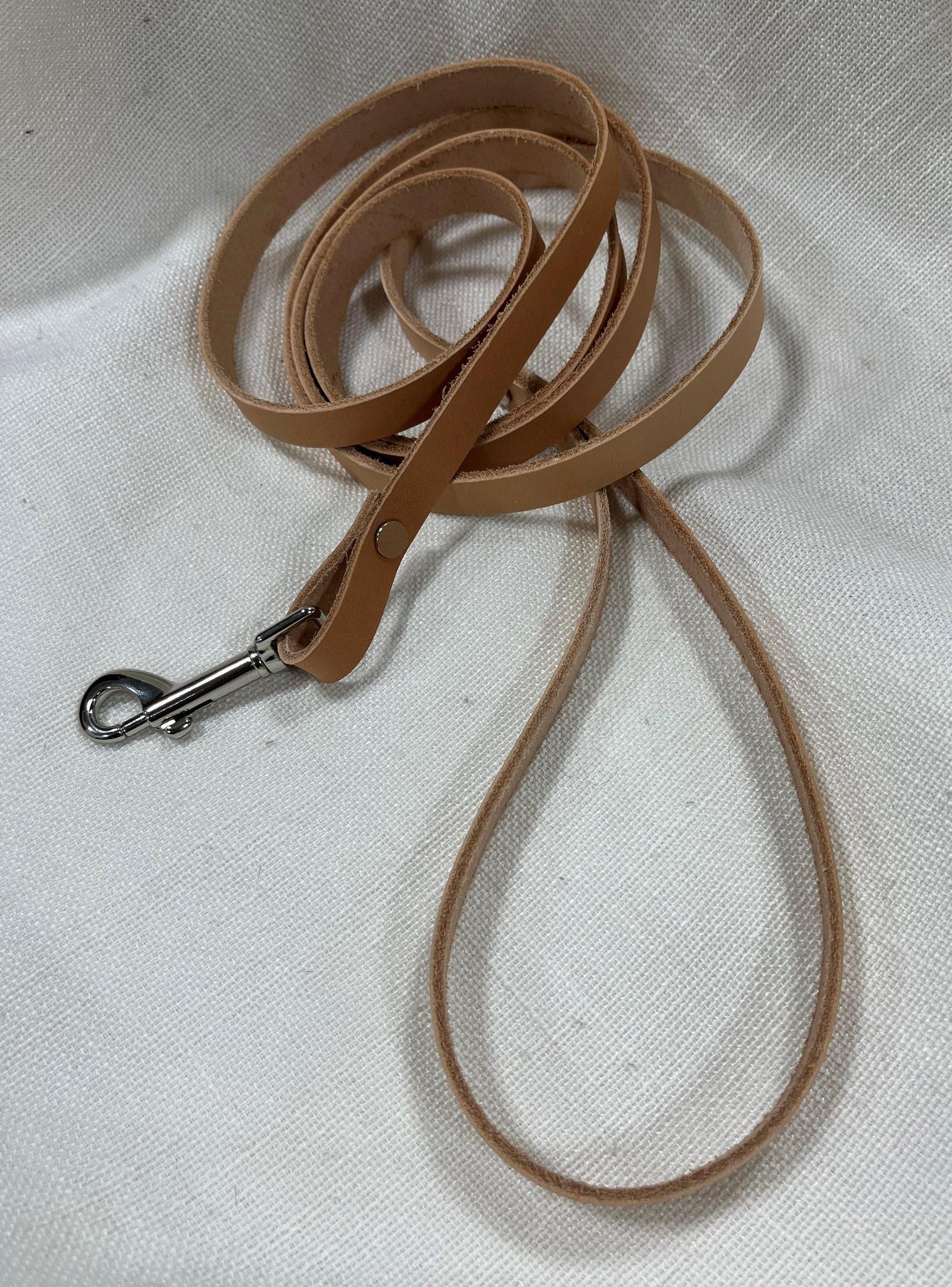Looking for that leather look without the weight for a smaller pup?  This is the leash for you!  Made with a lightweight leather, available in 2 colors, with standard metal clasp.  Approximate length 5 feet in all.