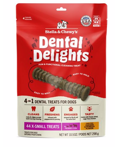 Stella & Chewy?s Dental Delights for dogs provide an enjoyable and effective way to maintain your pet's oral hygiene. These dental treats are crafted from premium ingredients to ensure they not only help reduce plaque and tartar but also support your dog's overall health.