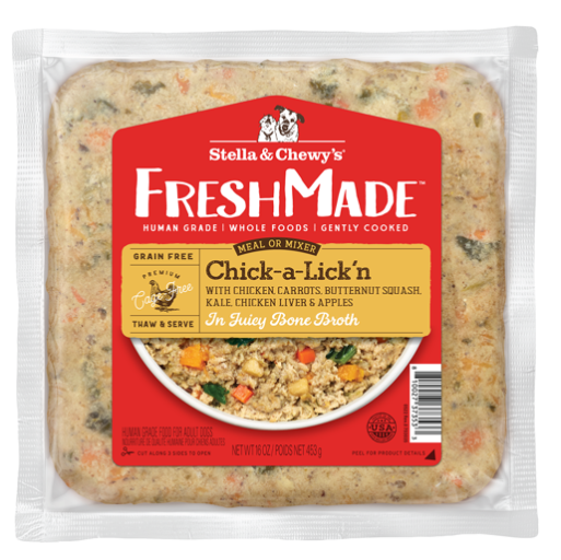 Stella & Chewy’s FreshMadeTM is fresh food made easy! Human grade whole foods are gently cooked in their own juices for a crave-able taste and tender texture. Reviewed by a board-certified veterinary nutritionist and made with only the good stuff – 60% nutrient-rich poultry & organ meats paired with healthy fruits, veggies, superfoods, botanicals & tasty bone broth - feeding a tasty, fresh meal is easier than ever! Simply thaw & serve as a complete meal or tasty topper and watch those tails wag!