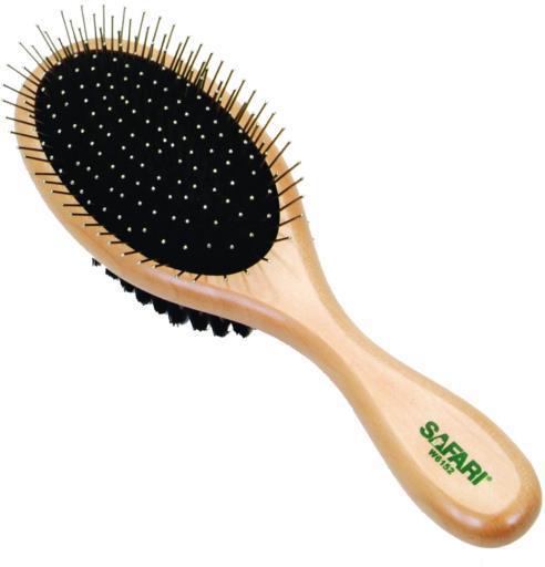 The Combo Brush is a dual purpose pin and bristle grooming brush. The Combo Brush is used for Medium to Large dogs to promote a shiny, healthy coat. Use the bristle side to distribute the dog's natural oils throughout the coat. The Combo Brush also lifts out loose hair and debris.