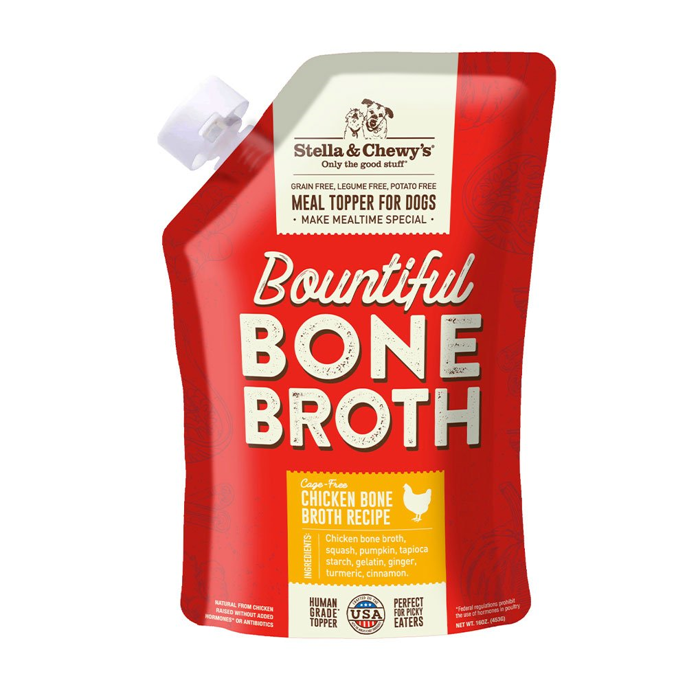 Chicken bone broth, squash, pumpkin, tapioca starch, gelatin, ginger, turmeric, cinnamon