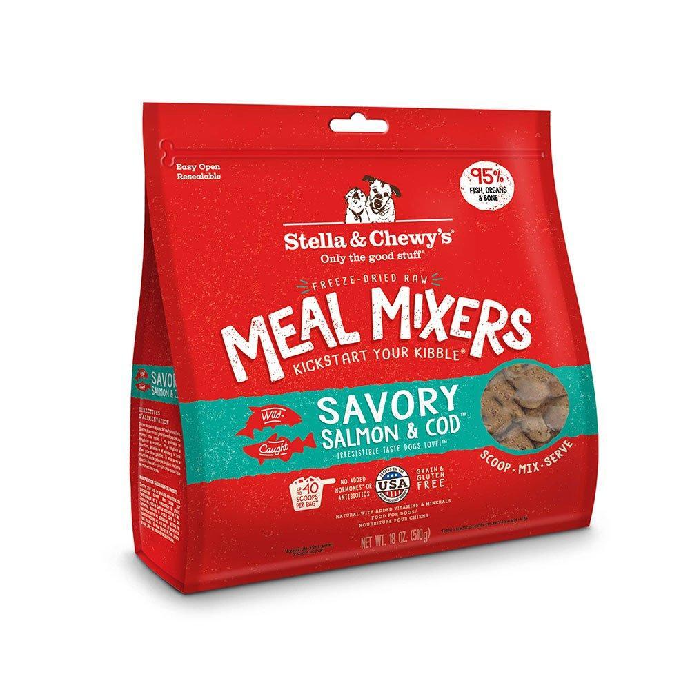 Kickstart your kibble with these Savory Salmon & Cod Meal Mixers (18 oz offering), delivering a boost of raw and irresistible taste! One simple scoop is all it takes to turn your dog’s everyday kibble into awesome raw nutrition. Simply scoop, mix-in and watch your dog go crazy for mealtime!