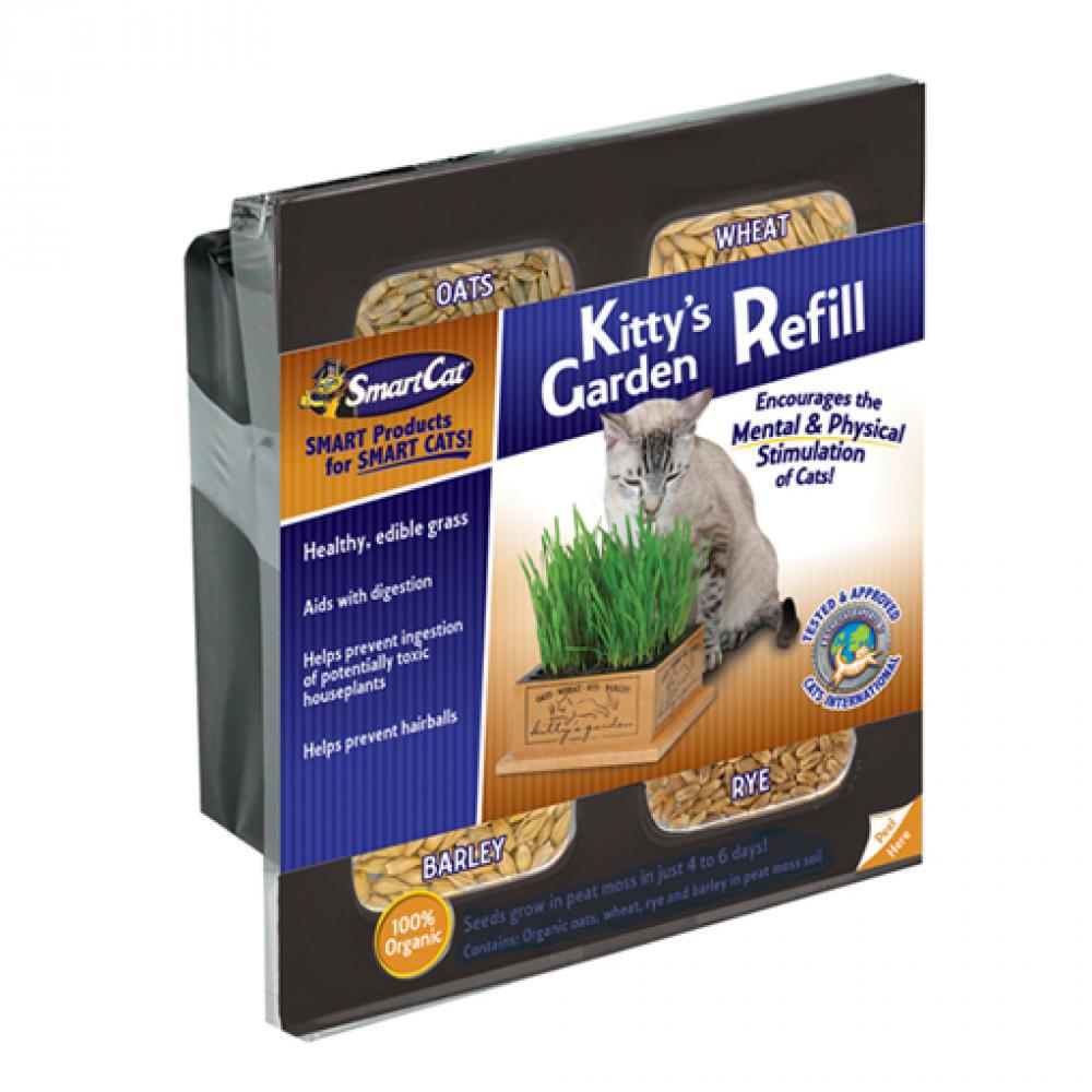 • Forget farm to table… Frisky's gonna get her greens fresher than that! SmartCat Kitty's Garden Seed Refill Kit allows pet parents to restock their Kitty's Garden with 100% organic oats, wheat, rye, and barley and help boost digestion and reduce the occurrence of hairballs. Seeds grow in 4-6 days with the included peat pellets.