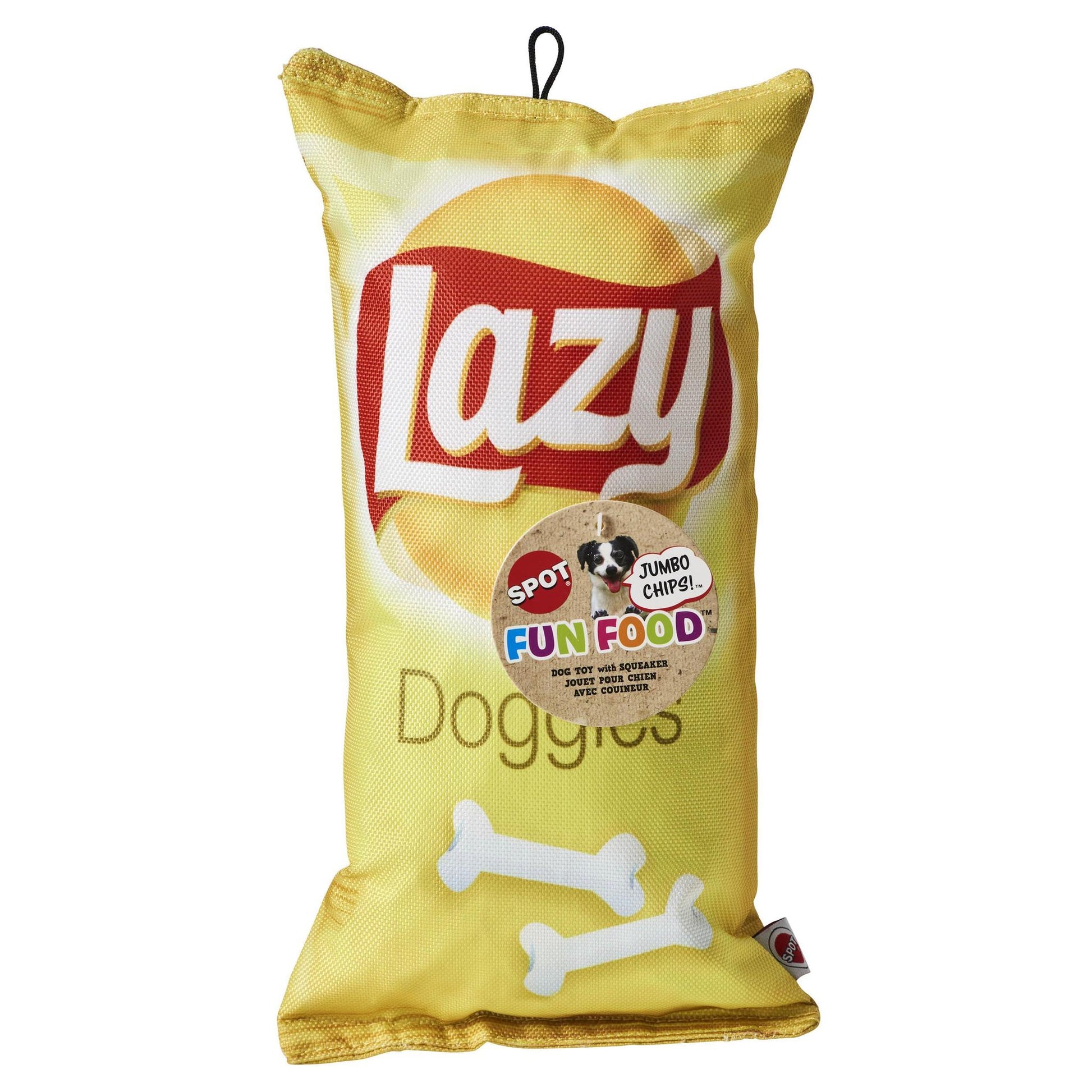 Fun Foods Chips parodies real chips! Realistic designs on durable fabric with crinkle paper and a squeaker inside! 100% fun and 0 calories! Jumbo size for even more fun!