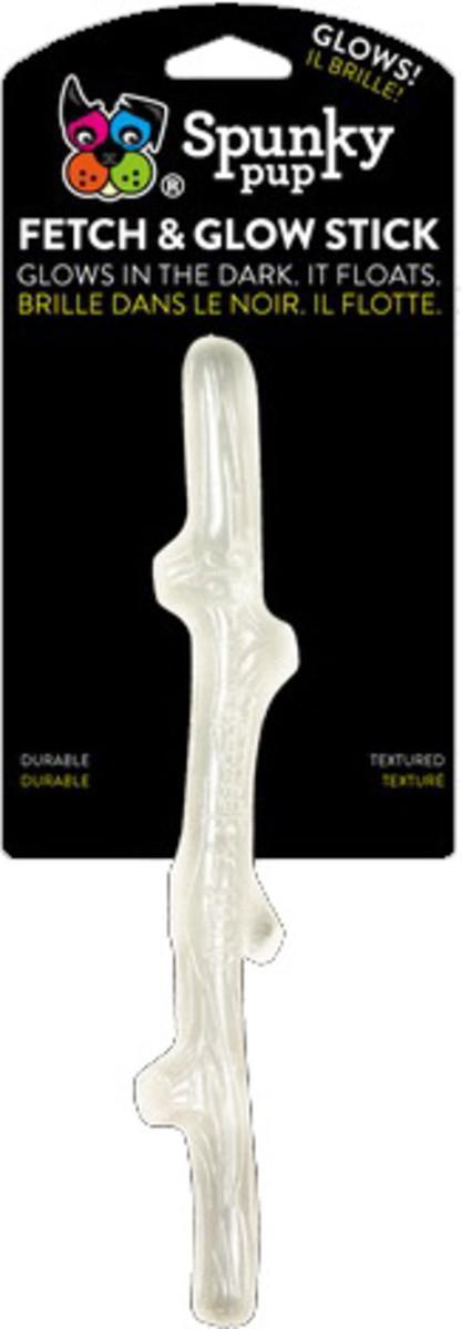 Spunky Pup Glow Stick is great for games of fetch after sundown. Expose it to either natural or artificial light for about 20 minutes then watch it Glow in the Dark! Made in the USA. Durable, textured TPR rubber construction makes the Glow Stick the perfect fetch toy for retriever breeds. It floats - Great for the pool, beach, or lake. Dishwasher safe. 12 inches long