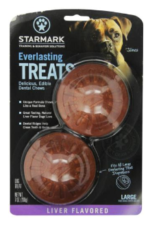 Bursting with flavor, the Everlasting Treats provide long lasting chewing enjoyment for your dog. Our specially formulated ingredients are completely edible and digestible, with a taste dogs can't resist. Their unique shape and raised dental ridges safely scrub your dog's teeth for an extra clean and fresh doggie smile. Dogs love Everlasting Treats as a healthy snack, or inserted into the Everlasting Treat Ball, Everlasting Fire Plug, or Everlasting Bento Ball for hours of fun and challenging interactive play. Pavlov's dogs wouldn't have needed a bell to drool over these tasty treats!