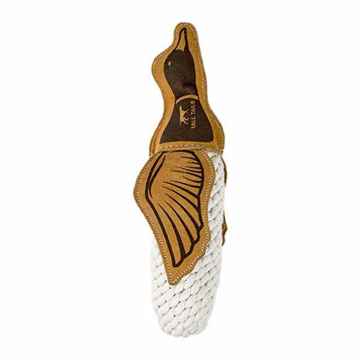 The TALL TAILS 15-inch Natural Leather & Rope Quacker Toy offers a rugged and playful option for your dog's entertainment. Crafted with natural leather and sturdy rope, this toy is designed to withstand the rough and tumble of active play while offering a unique texture that dogs love.