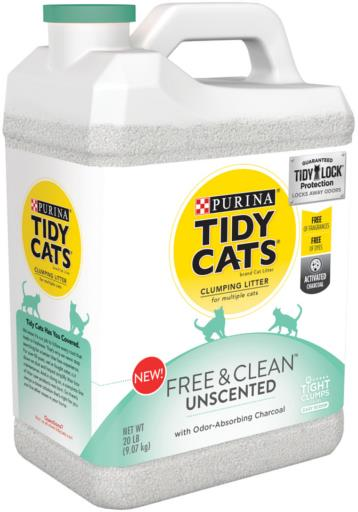 • Purina Tidy Cats clumping unscented cat litter for multi-cat households offers uncompromising odor control with activated charcoal that absorbs odors