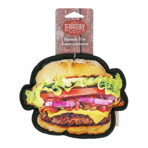 Mark Your Territory this carnival season with Original Territory's Hamburger with Squeaker! This dog toy is made with durable materials such as reinforced fabric for long-lasting interactive play. In addition, we've also added a squeaker for exciting search-and-find fun. Great for fetch, tug-of-war, and other supervised play fun, your pup and this toy will go deliciously together like a burger and fries!