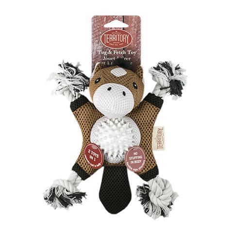 Mark Your Territory on the farm with Original Territory's Horse Farm Friend 2-in-1 Dog Toy! Designed with durable fabric and a flexible rope structure, this toy is paw-fect for all types of interactive play. Plus, we included a squeaker ball that pops out of your farm friend for an extra level of fun.