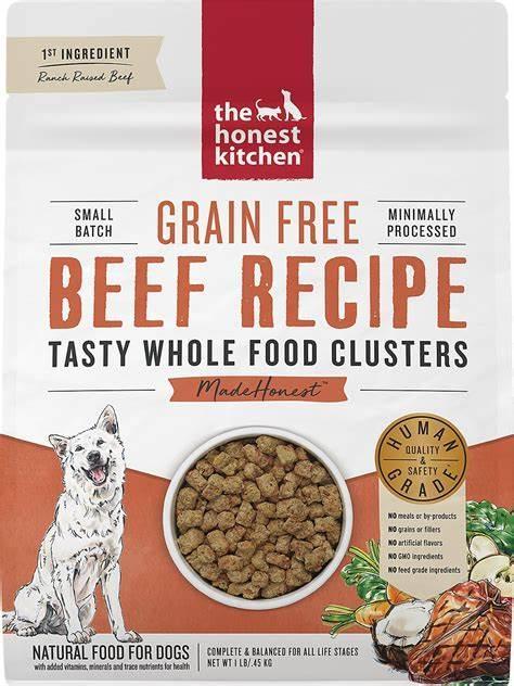 We believe that human grade, minimally processed whole foods provide pets the best nutrition possible. Created with a veterinary nutritionist, these 100% human grade clusters are made with real whole foods you’d recognize from your own kitchen, like ranch raised beef. They’re MadeHonest™ with human grade, nutrient-rich ingredients, cold-pressed into bite sized clusters, roasted and dehydrated to maintain the nutrients, aroma and taste of whole foods. Our Grain Free Beef Whole Food Clusters give you the same scoop & serve convenience as other dry dog foods, while giving your pup minimally processed, 100% human grade taste and nutrition.