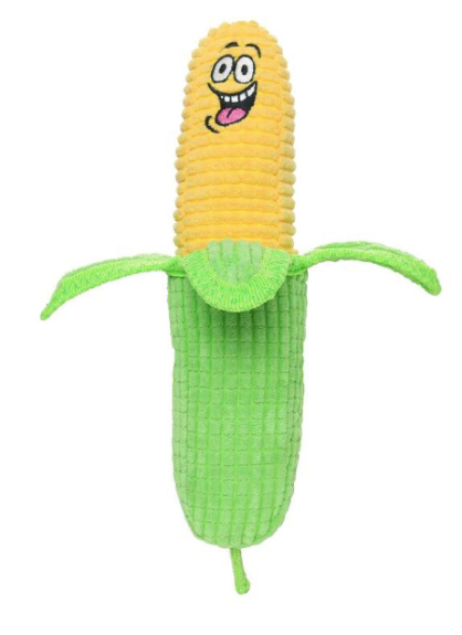 This Tuffy Funny Food Corn Squeaker Dog Toy is among the most durable dog toys on the market! With up to 4 layers of material, this toy is bonded and sewn together for added durability. Most dog toys have just one seam to hold the toy together. Tuffy toys can have up to 7 rows of stitching. A protective webbing is sewn around the outside edge to cover the seams of the toy and make the toy even stronger. This toy is built to last, but keep in mind that no toy is indestructible. Tuffy toys are designed to be used for interactive play and are not chew toys.