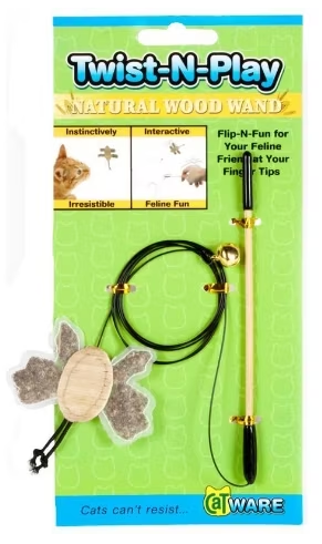 • A wooden wand that teases and tantalizes cats with a twist and turn of your fingertips.