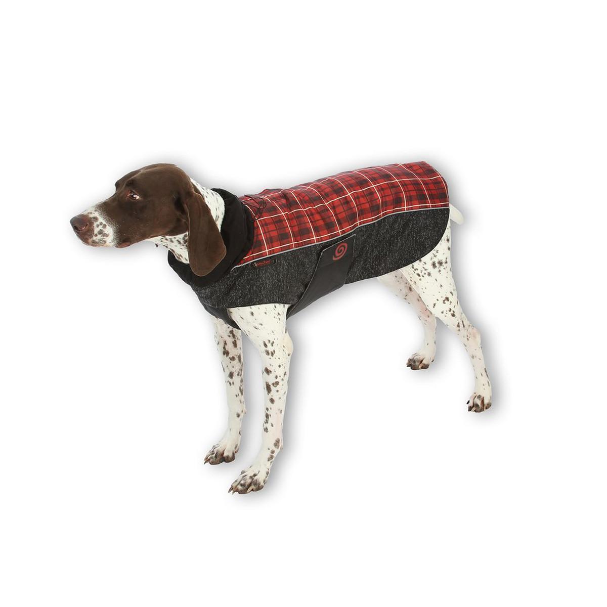 You can’t beat this warm, waterproof coat. Original fabric patterns and full reflective lower fabric panels, plus reflective piping. The D-ring has been refined to add clip lights (sold separately, see link below). An adjustable turtleneck, generous hook and loop closures, extended chest protection, opening for leash attachment, fiberfill inner lining, and fleece inside add to the features.