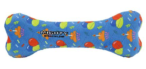 Celebrate your furry friends with this Mighty No Stuff Celebration Dog Toy! This toy has no stuffing, is machine washable, floats, and squeaks.