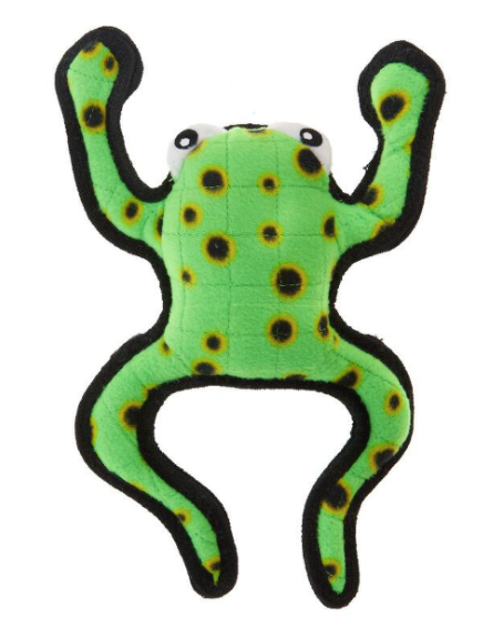 Tuffy Dog Toys Leaping Frog - Bounce around with the leaping Frog for a playful time with your companion. Your Pooch is sure to be pleased with this fun and adventurous toy! For interactive play with one or multiple dogs. Easy to toss and Great For Indoors! Washable! And Floats!! -- soft edges won't hurt gums.
