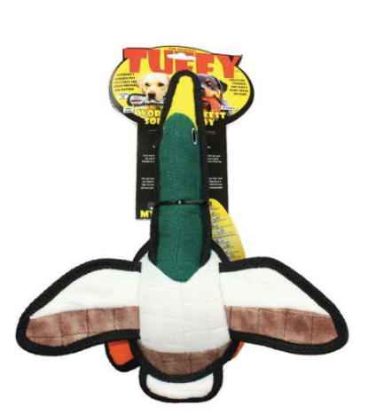 The Tuffy Junior Duck is a durable, yet soft toy for dogs of all sizes. The Tuffy Junior Duck is made with multiple layers of material that are bonded and sewn together to make one "Tuff" Layer. Each toy is then stuffed with safe, non-toxic fiber and sewn with multiple rows of stitching for extra strength and durability. The Tuffy Junior Cow has a squeaker, sewn inside a protective pouch, for your dog's safety and to provide hours of fun and entertainment. Tuffy dog toys can also float and are best used as interactive play toys and not chew toys. Machine wash / Air dry.