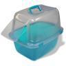 Enclosed pans prevent litter spills, odor-absorbing zeolite filter freshens trapped air, gives cats privacy, hold plastic liner in place, convenient carrying handle, 4 latches lock top to bottom, and removable odor door.