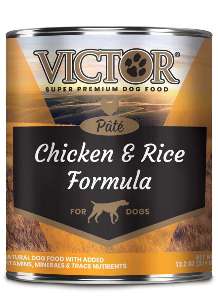 VICTOR® Chicken and Rice Formula Pâté makes an excellent topper for VICTOR dog food kibble. The well-balanced nutrition packed in this food supports the needs for both active dogs and puppies.VICTOR Chicken and Rice Formula Pâté is formulated to meet the nutritional levels established by the AAFCO dog food nutrient profiles for growth and maintenance including growth of large size dogs.