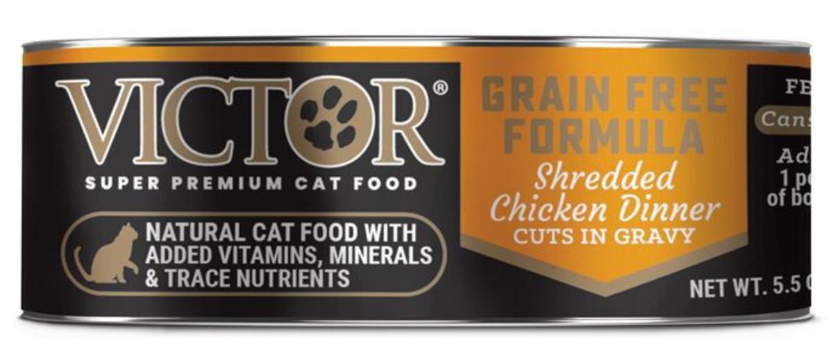 VICTOR® Grain Free Formula Shredded Chicken Dinner Cuts in Gravy is formulated to meet nutritional levels established by the AAFCO cat food nutrient profiles for maintenance.