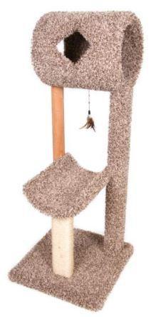 • Horizontal tube with window atop tall posts with sleeping cradle below. 1 full-length sisal post.