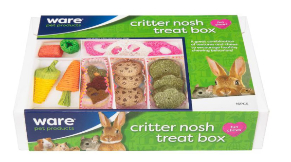• 3 timothy chews, 2 critter pops, 3 loofah wedges, 2 veggie chews, 3 critter cookies, 3 heart chews.