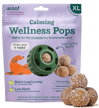 • Made in USA: At Woof, we create thoughtfully designed products so you can tell your “I love you” in a way they’ll understand. Man's best friend deserves safe, clean, and long-lasting fun, and you deserve the quiet that comes with it. Calming Pupsicle Pops for dogs are a wonderful way to keep dogs busy with the long-lasting Pupsicle toy.