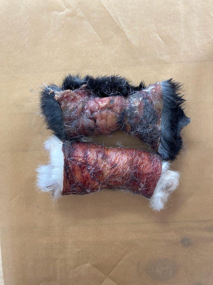 Our Rabbit Rolls are perfect for any sized dog. These help aid in teeth cleaning, sensory and metal stimulation as well as helping clean out the gut.