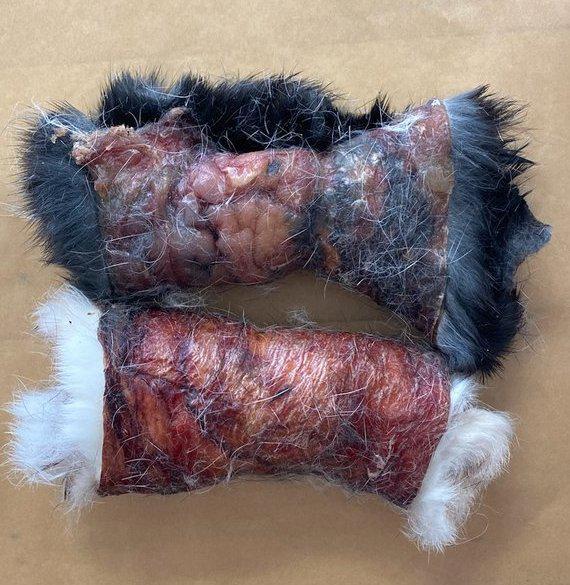 Our Rabbit Rolls are perfect for any sized dog. These help aid in teeth cleaning, sensory and metal stimulation as well as helping clean out the gut.