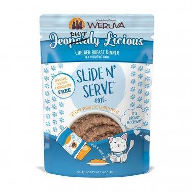 Answer: High quality and delicious chicken breast. Question: What is in Weruva’s Jeopurrdy Licious? No matter how you frame the question, Jeoppurdy Licious is the answer for your picky cat. Plus there’s no timer so they can take all the time they want to eat up the yummy goodness.