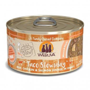 There’s no need to wait until Tuesday for your kitty to eat this comfort food. The delicious, minced beef, chicken and salmon in this stew will leave your kitty wanting every day of the week to be Taco Stewsday!
