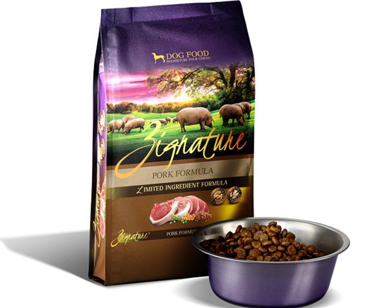 Our Pork Formula is a great source of muscle building protein and amino acids. Pork is also rich in minerals, such as thiamine, which helps the body convert food into energy. Our recipe is completely grain free, for dogs with food sensitivities, and contains low glycemic carbohydrates to keep your dogs healthy, strong, and energetic. And the taste is unbelievable. It is easily one of our most popular recipes. Your dogs will love it and benefit from the excellent nutritional content. Zignature® Pork Formula – Learned from Nature, Crafted to Perfection. Physiologically Tuned™, limited ingredient premium food for dogs. Hypoallergenic meat first recipe, with no Corn, Wheat, Soy, Dairy, or Chicken, Chicken Eggs, or Chicken By-Products. Zignature® Pork Formula for dogs is formulated to meet the nutritional levels established by the AAFCO Dog Food Nutrient Profiles for all life stages, including growth of large size dogs (70 lbs or more as an adult).
