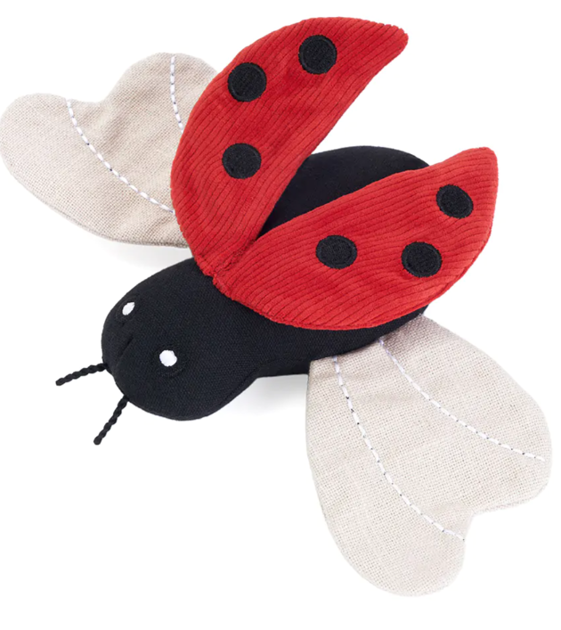 Cute and cuddly with a touch of corduroy texture, ecoZippy Corduroy Critter dog toys are here! Made of natural materials and featuring an eco-friendly EVA squeaker, Corduroy Critters are great way to play and squeak around with your environmentally conscious pup. This adorable Ladybug features corduroy wings, canvas wings with embroidered details and string antennae.