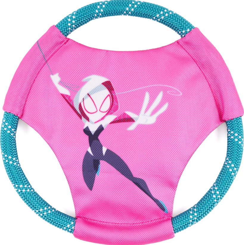Marvel’s Ghost-Spider is ready to take flight with the Ghost-Spider Rope Gliderz toy from ZippyPaws! Featuring an image of Gwen swinging into action, and made of durable climbing rope and nylon fabric, this lightweight flyer is the perfect toy for heroic tossing and tugging fun!
