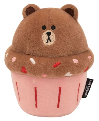 • In the form of a cupcake, BROWN features an embroidered face, sprinkles, and liner, with attached ears and a LINE FRIENDS tag