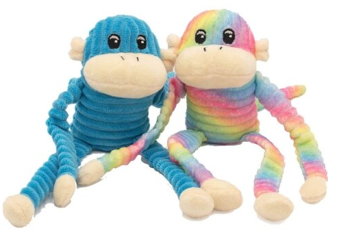 • Double the fun for your pup with this 2-pack of vibrantly colored, small-sized Spencer the Crinkle Monkey toys