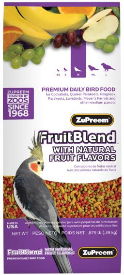FruitBlend® Flavor with natural flavors provides healthy and delicious nutrition for everyday feeding for Cockatiels, Quakers, Lovebirds, Small Conures and other medium birds that prefer this pellet size.